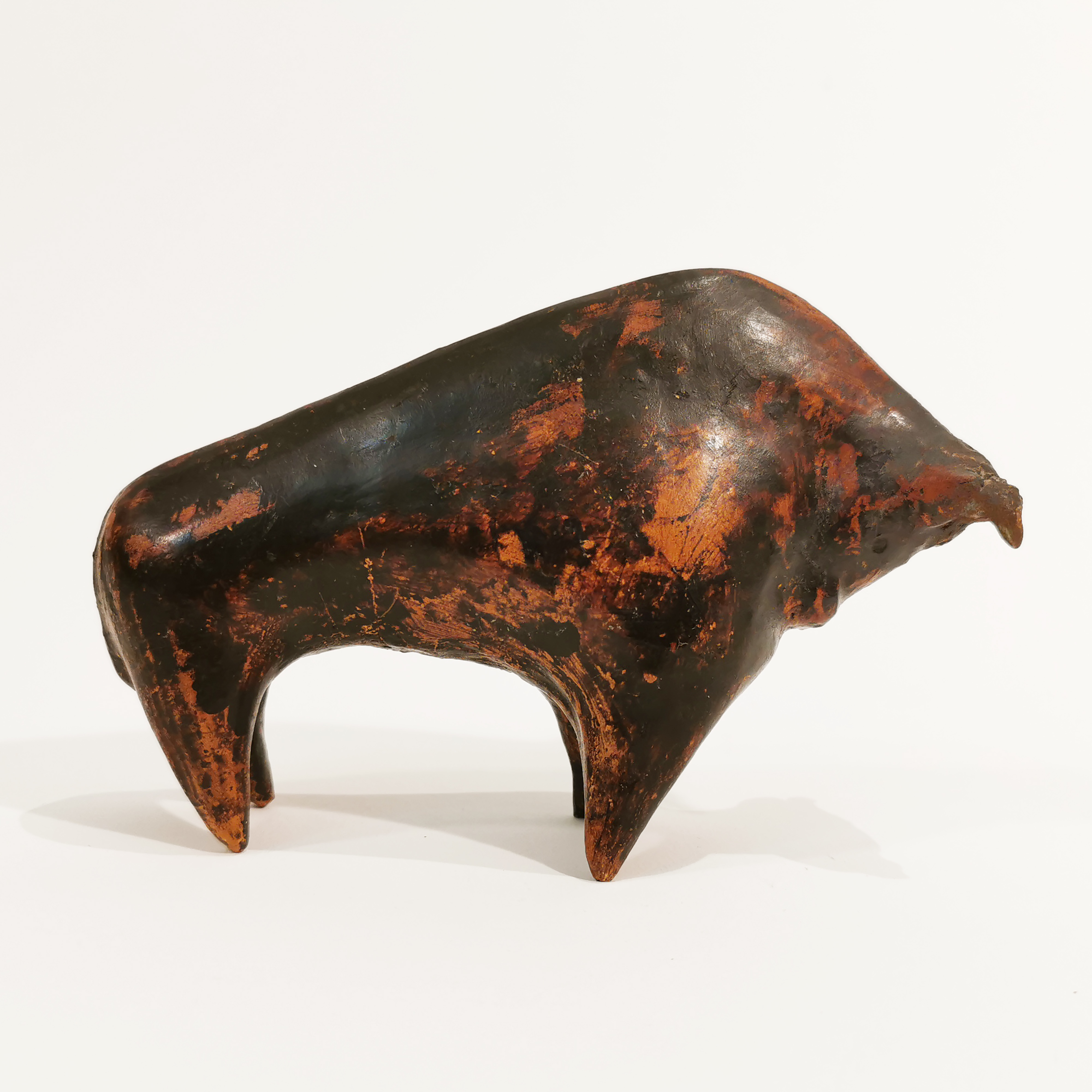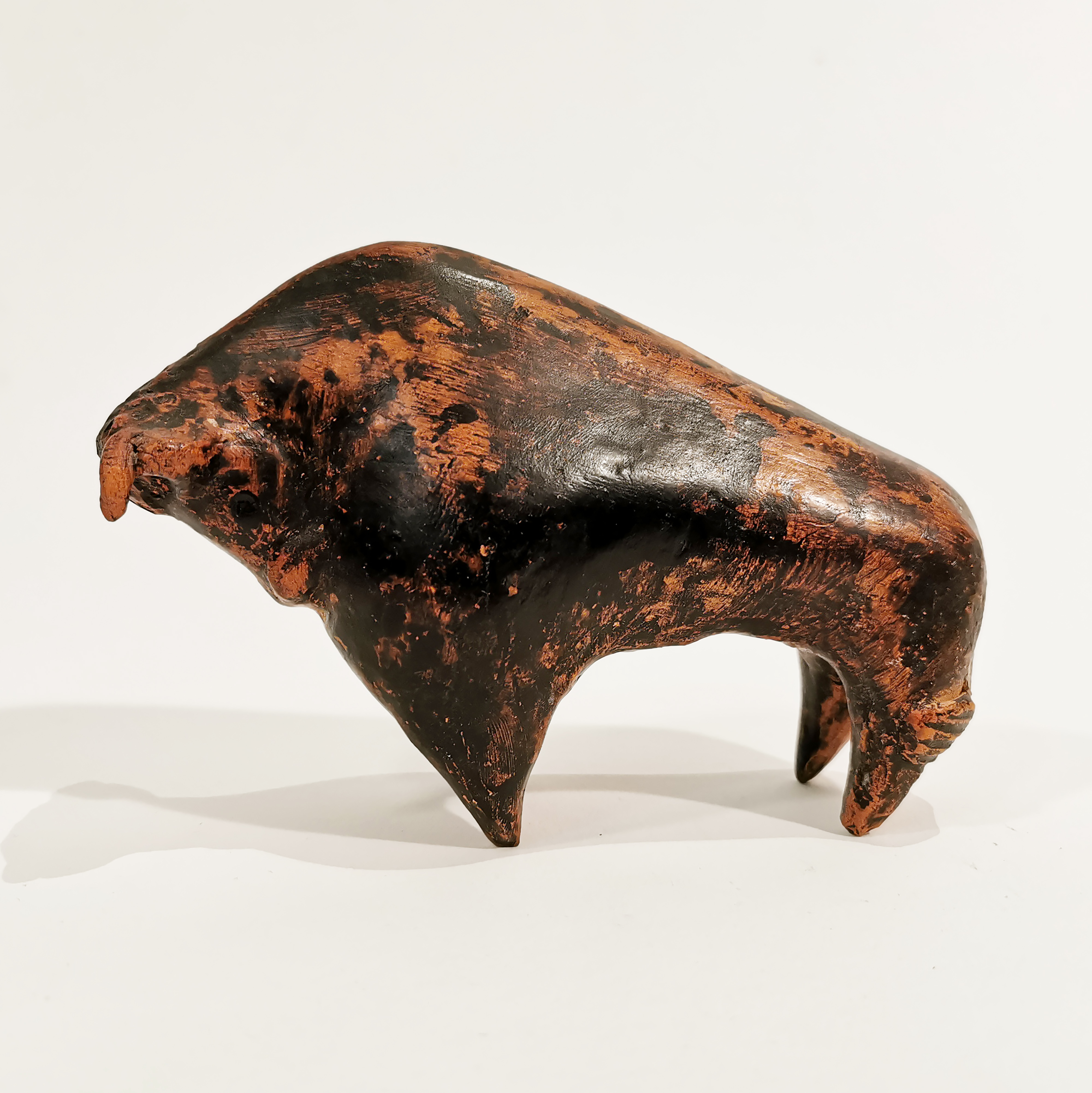 Sehr ausdrucksstarke und authentische Figur aus Ton eines Stier.