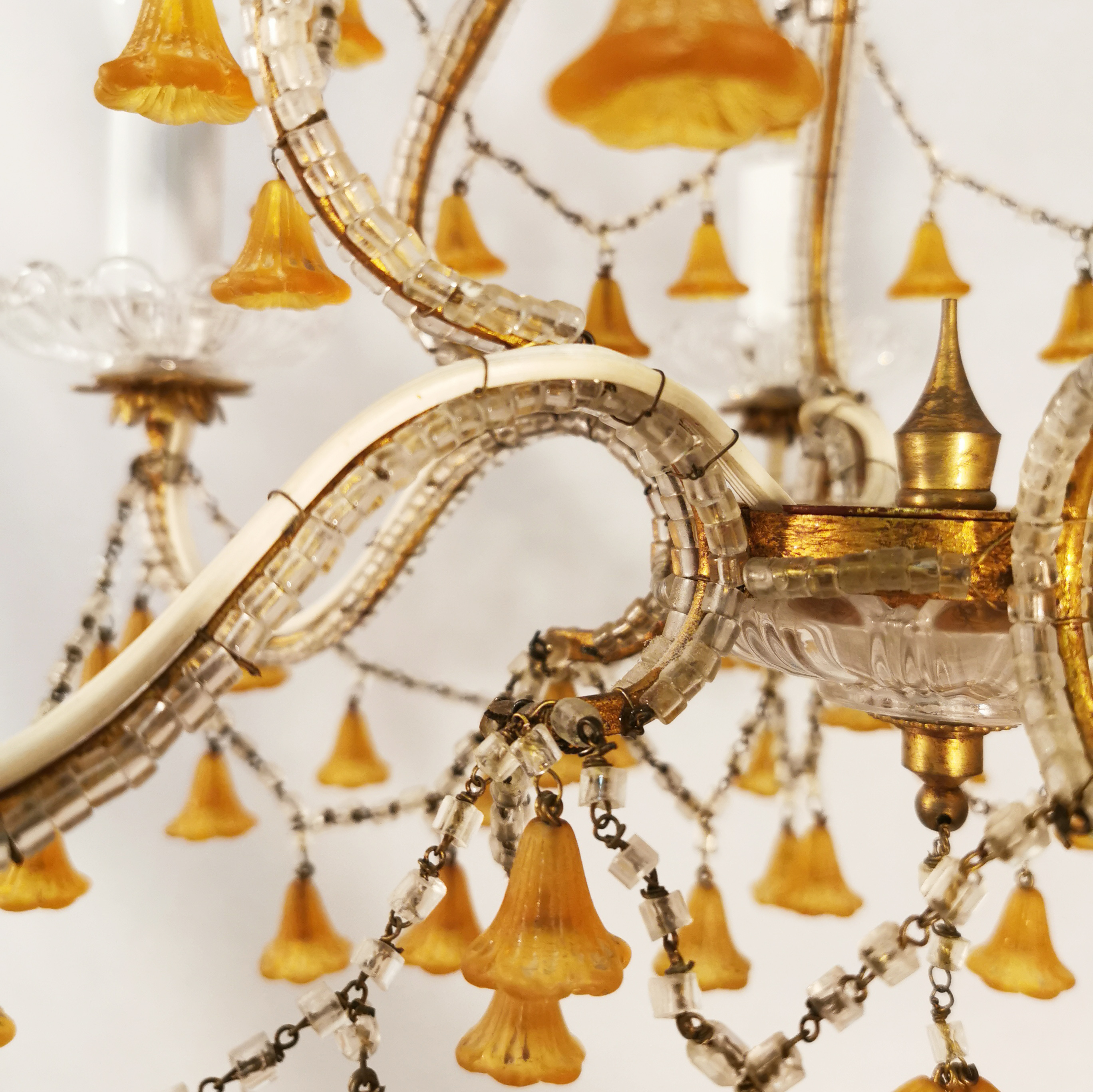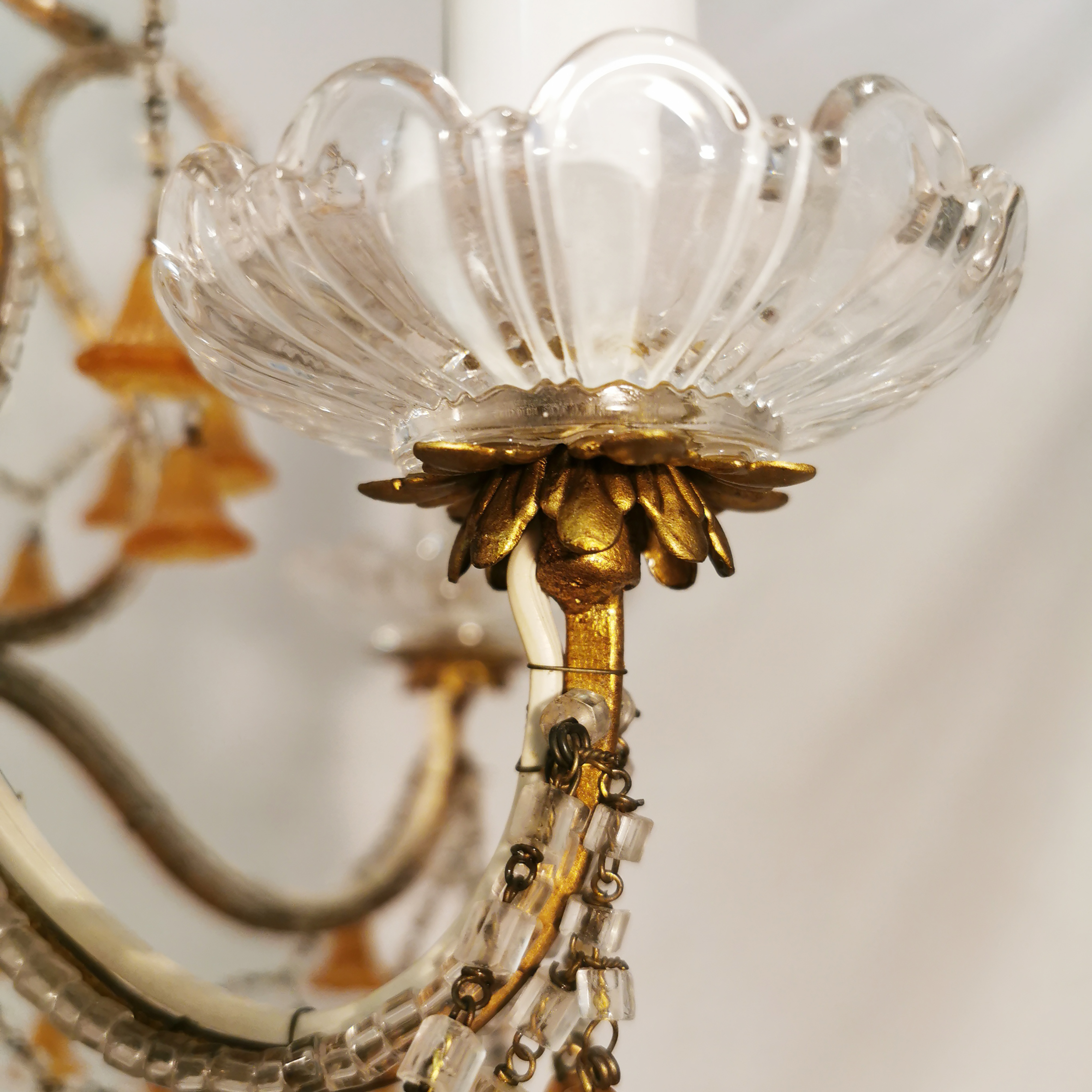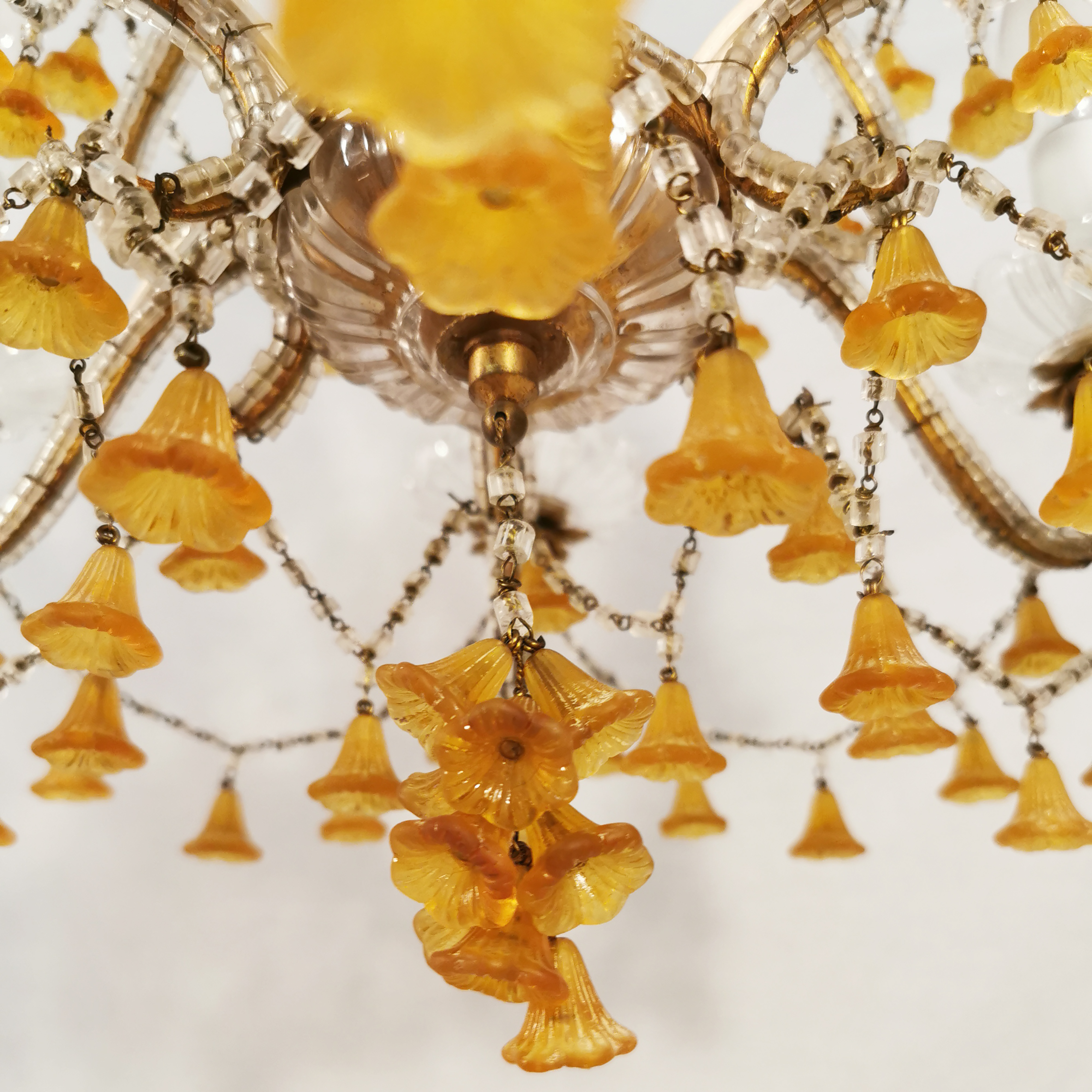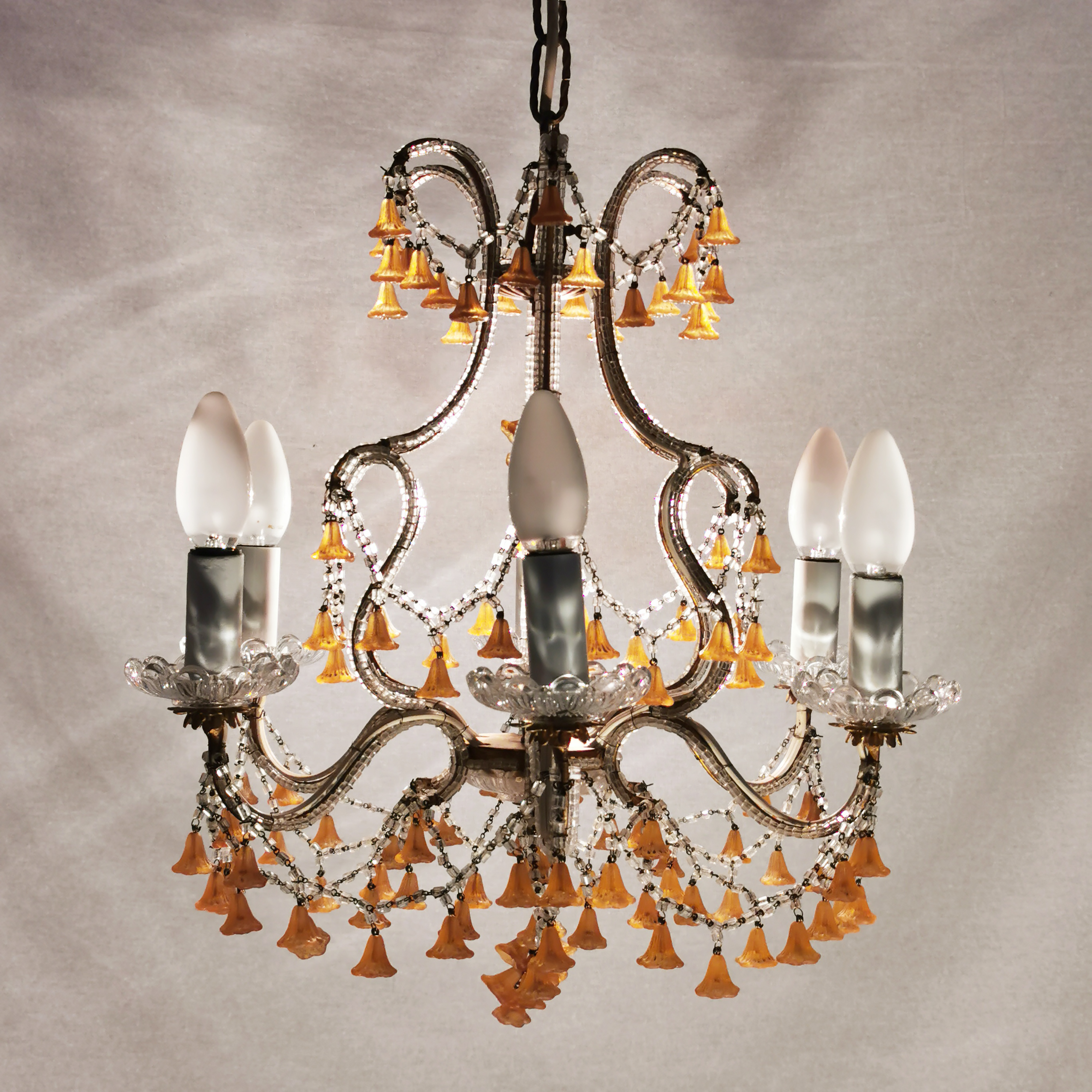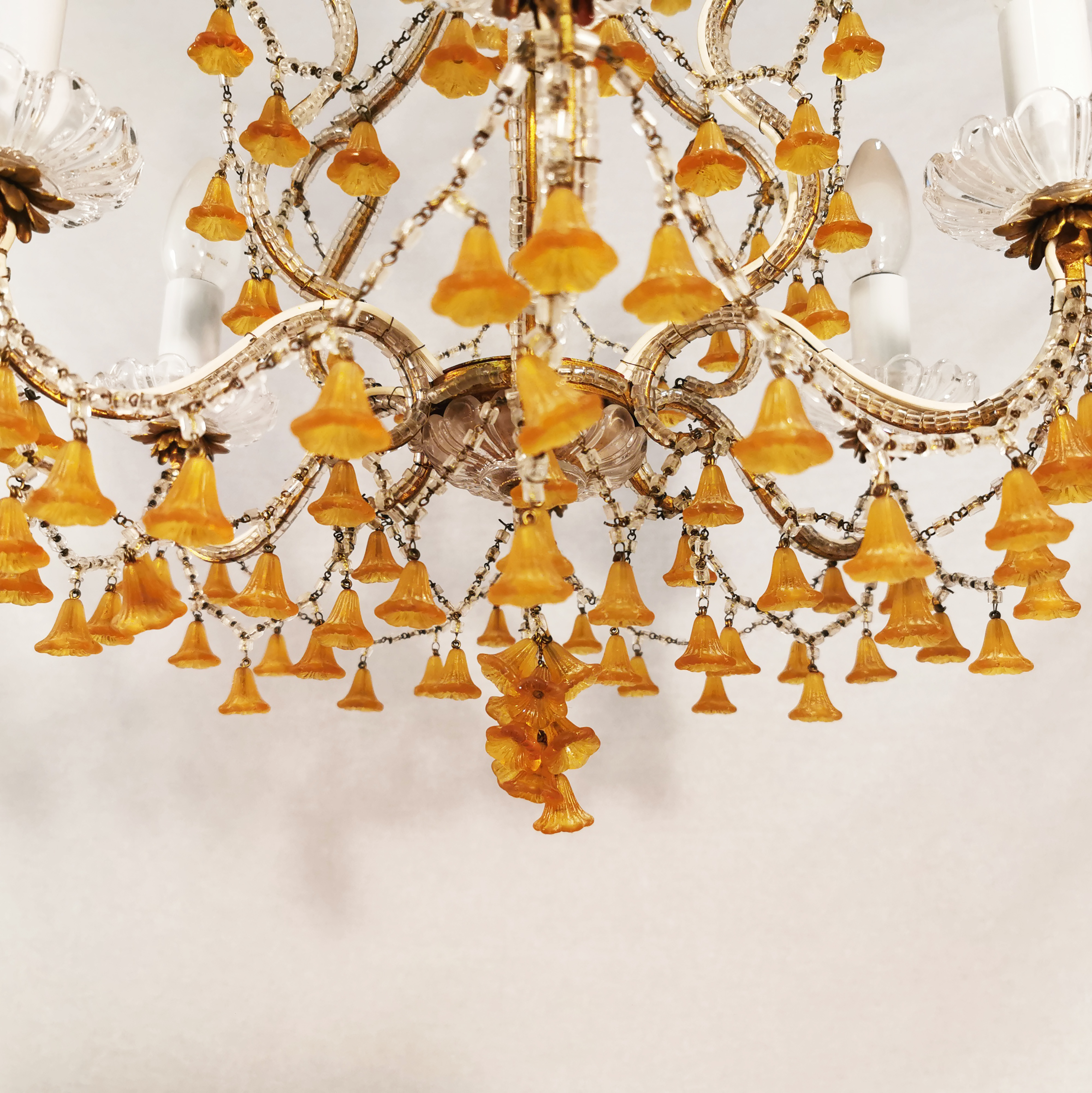 Dieser antike opulente Kronleuchter aus Italien ist eine echte Augenweide. Der antike Stil dieser Beleuchtung kann wunderbar mit moderner Inneneinrichtung kombiniert werden – seine Wertigkeit verleiht dem Raum die edle Note. Für Sammler, Vintage-Liebhaber und experimentierfreudige Inneneinrichter ein echtes Muste-Have Stück.