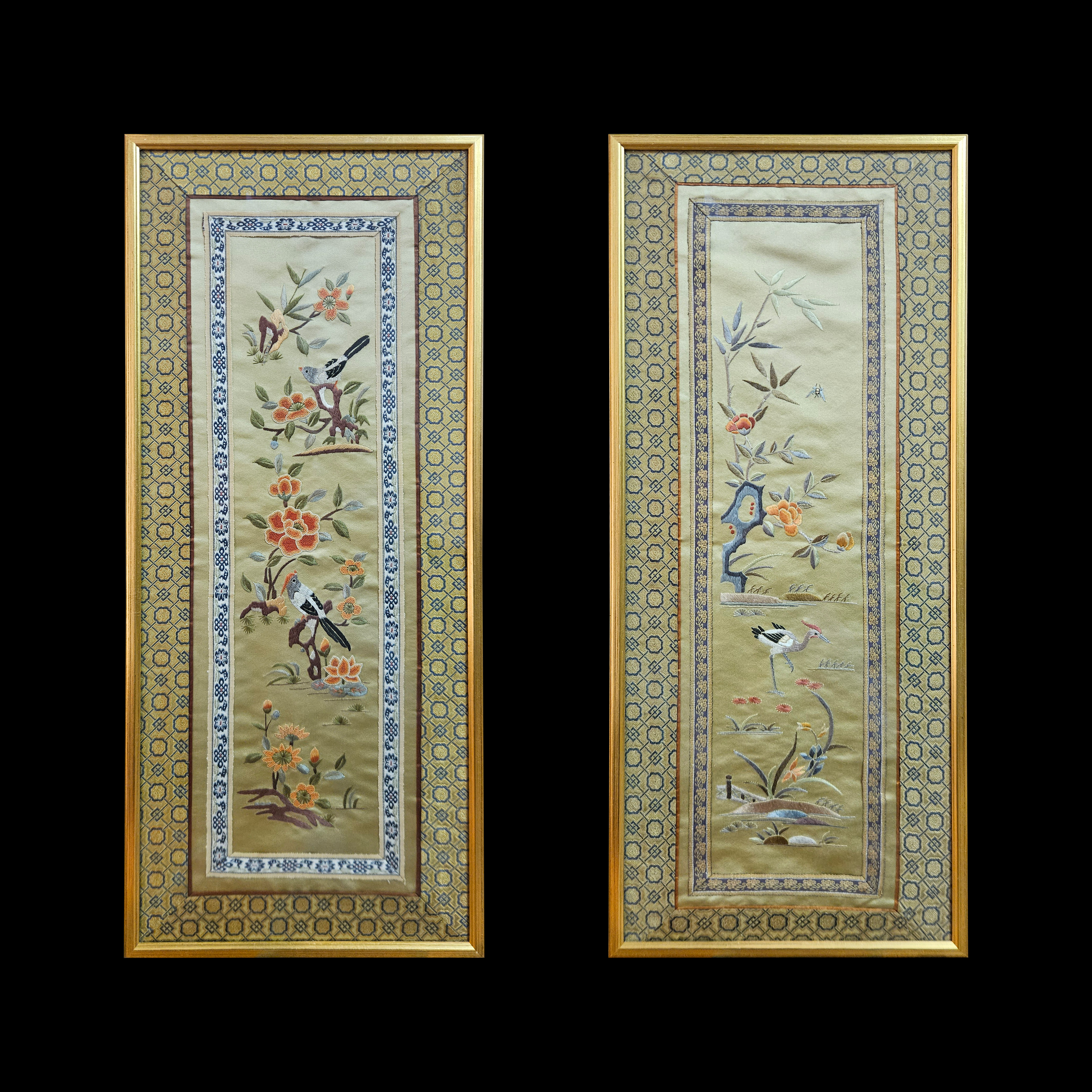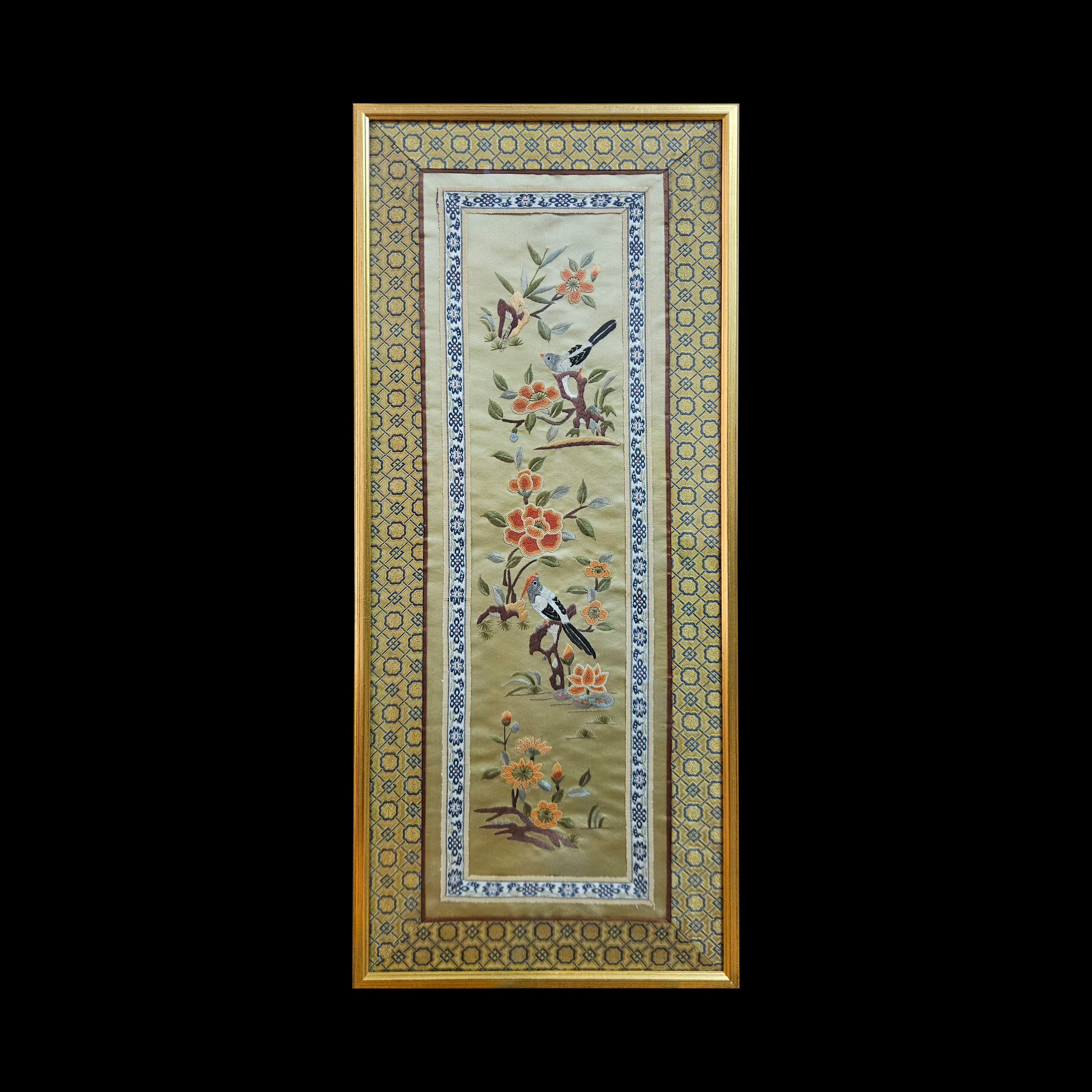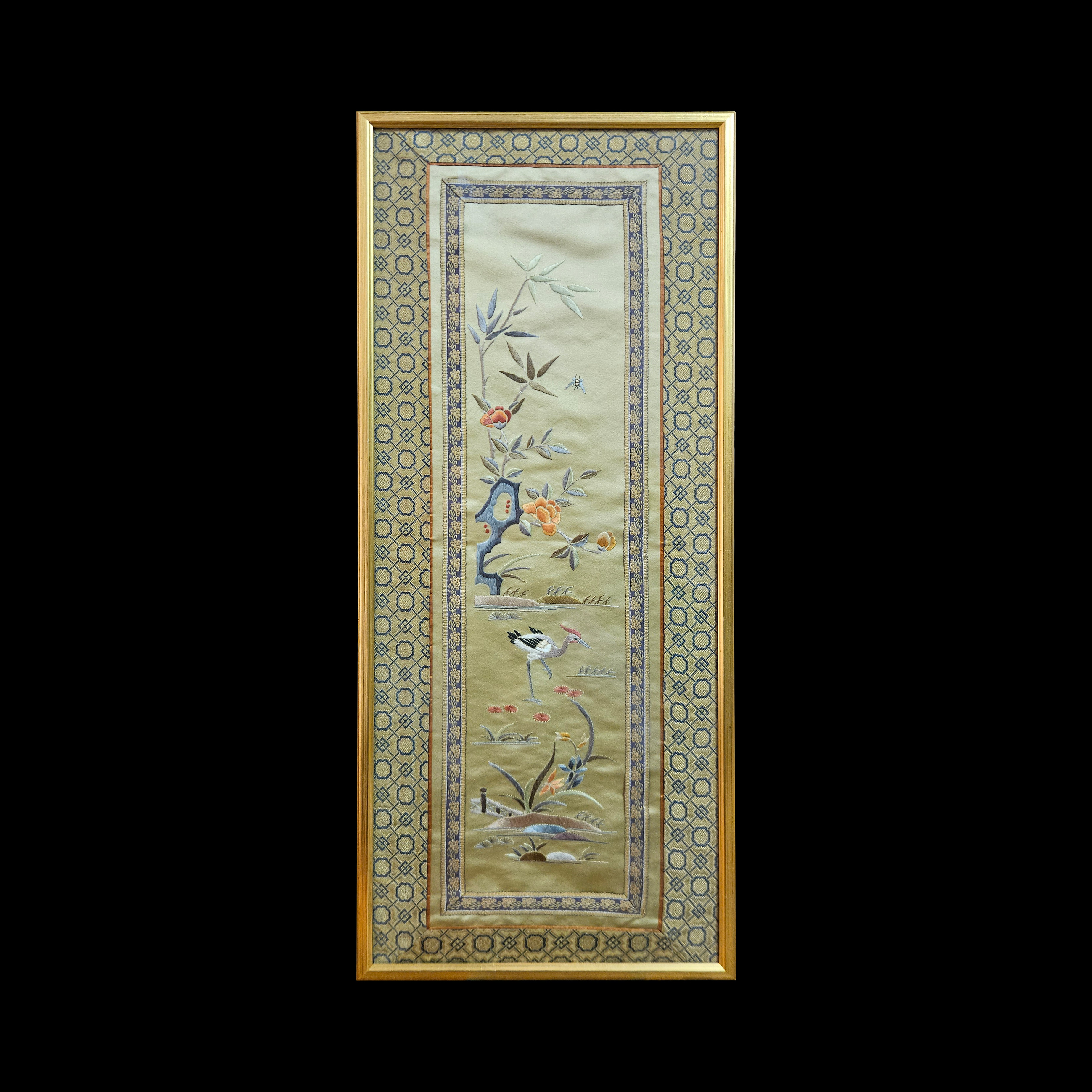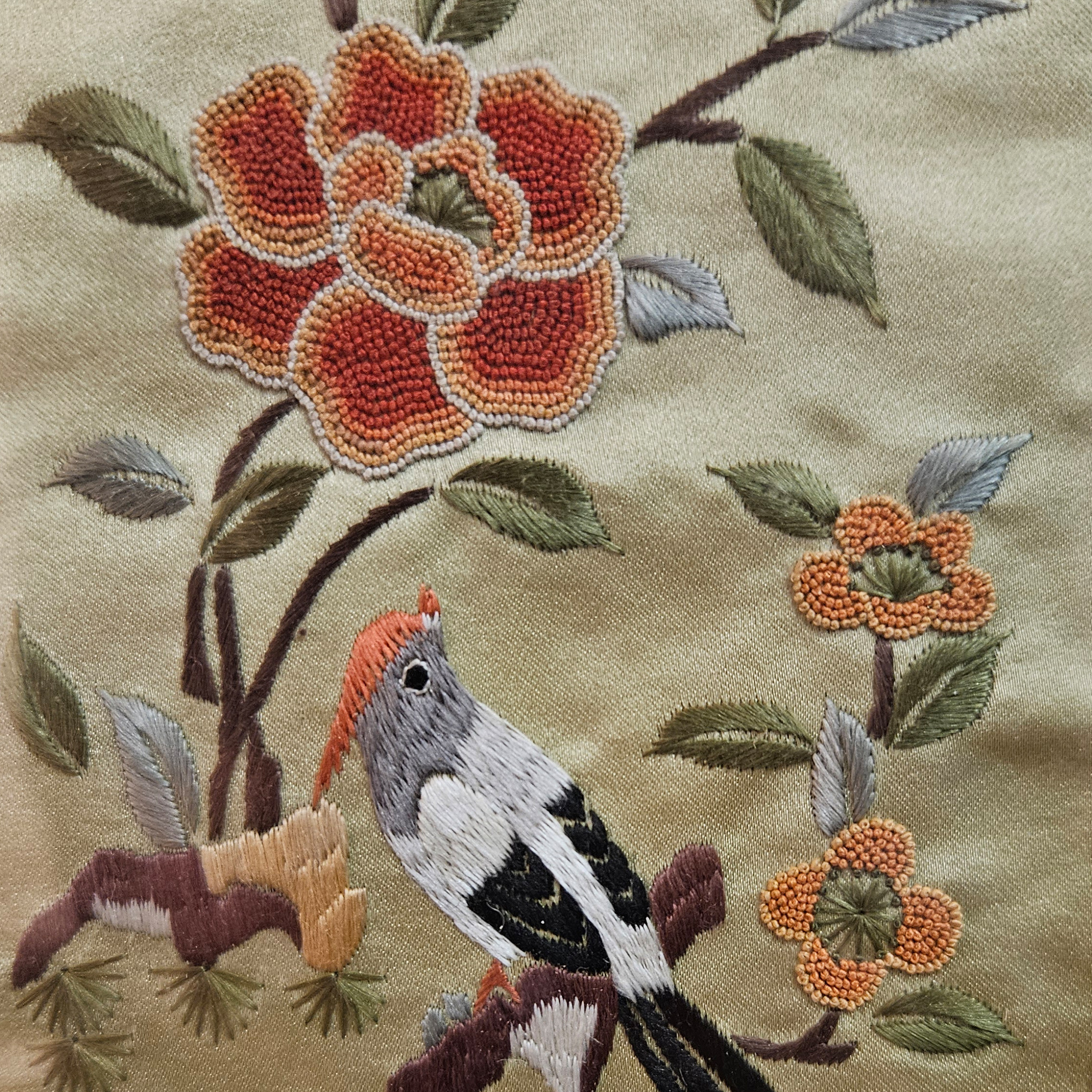 Alte chinesische Seidenstickerei sehr gut erhalten.