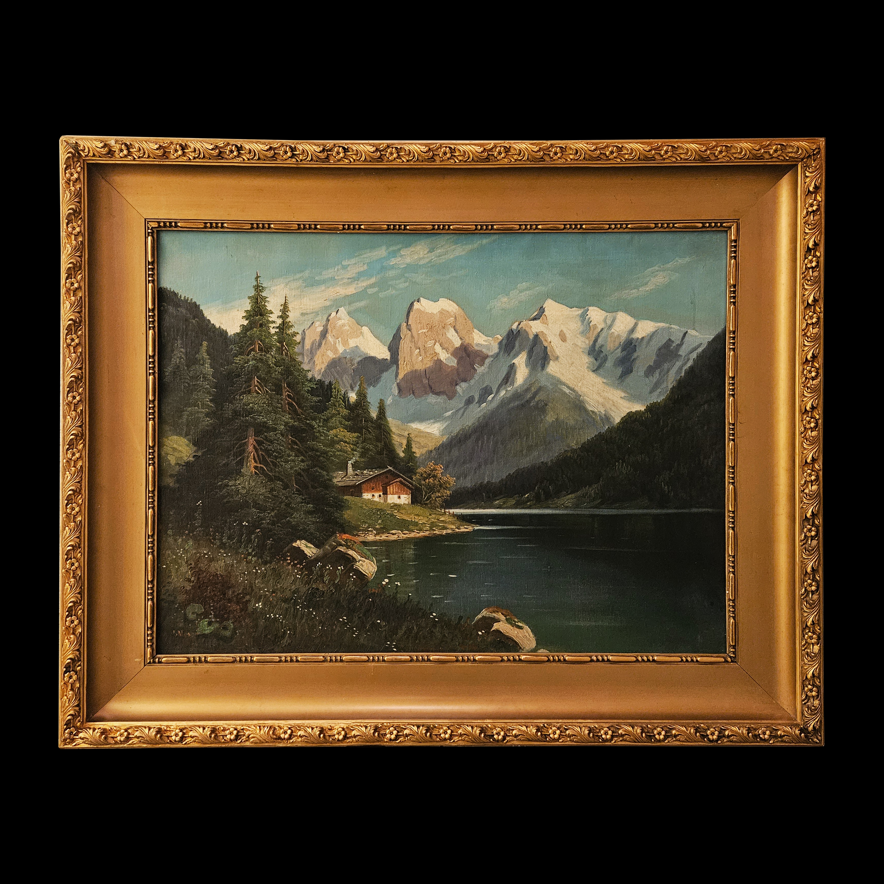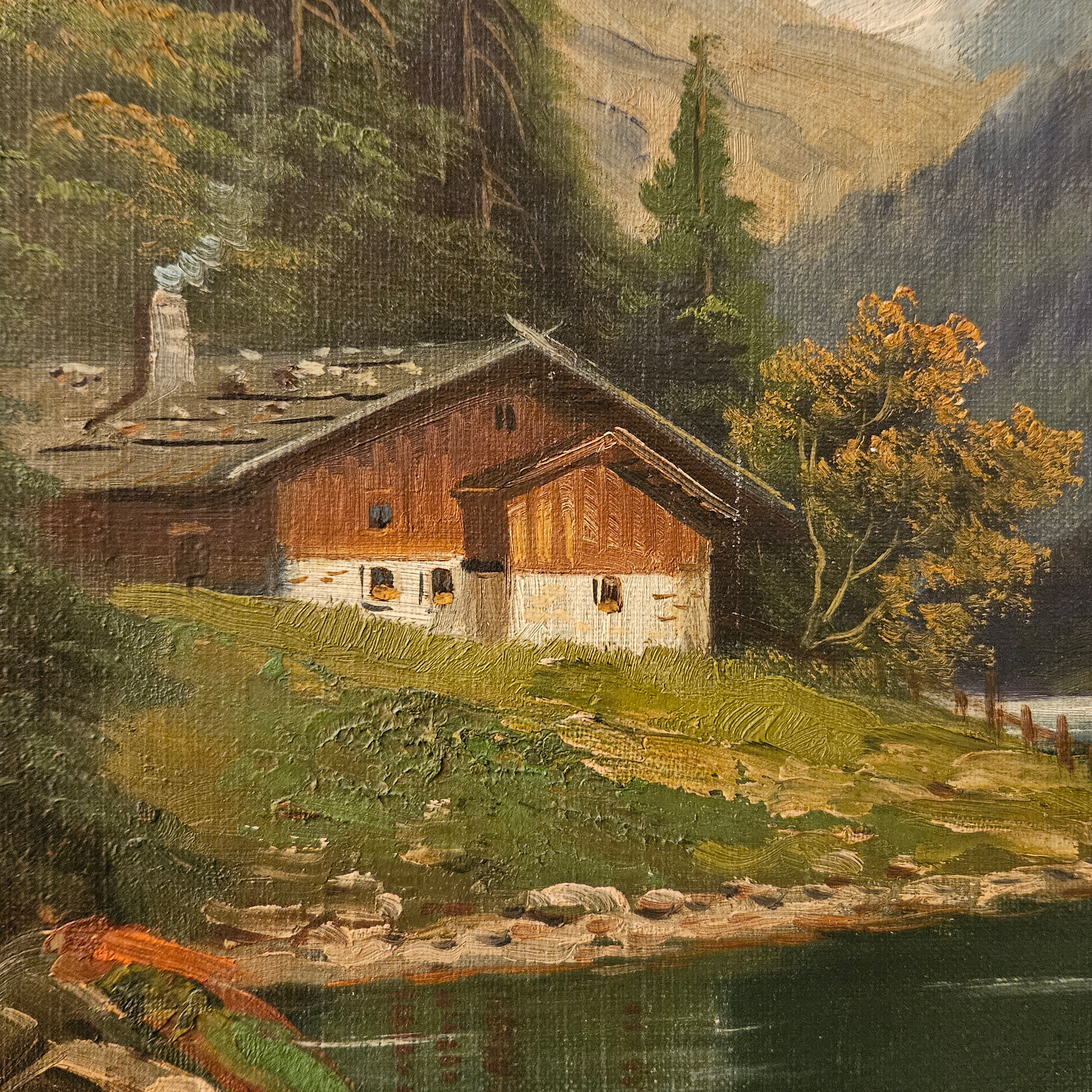 Sehr idyllisches Landschaftsgemälde der Schweizer Alpen. Unten links signiert.