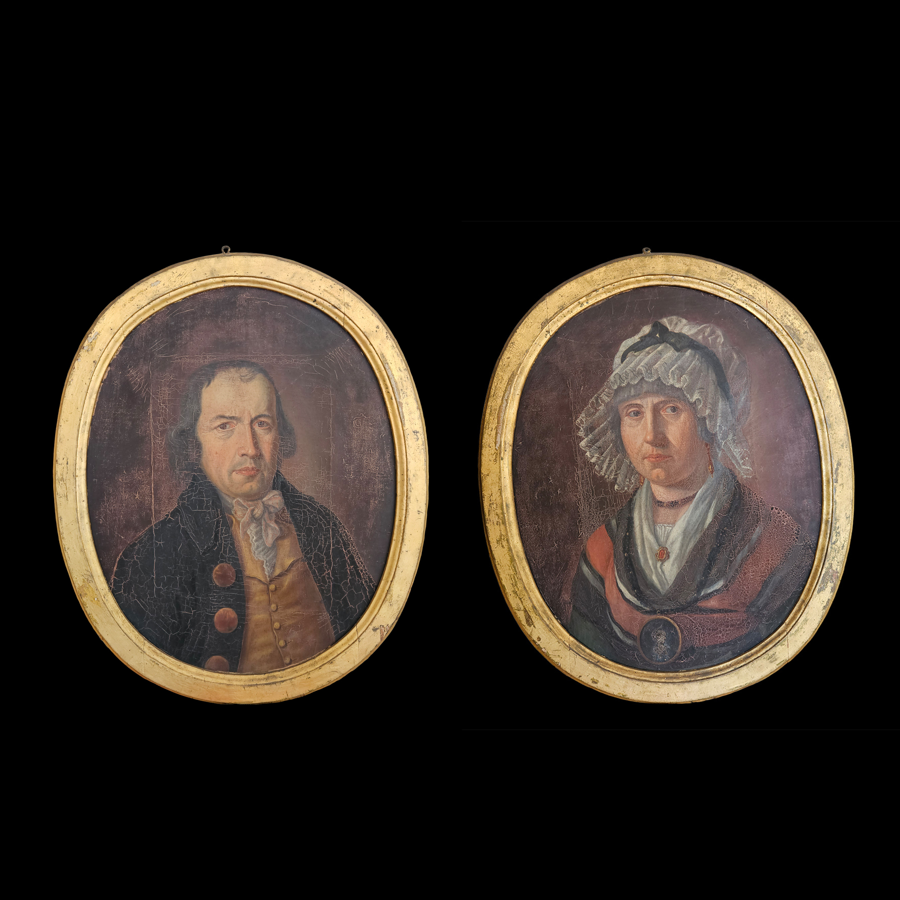 Zwei sehr alte Portrait Ölgemälde in ovaler Form.
